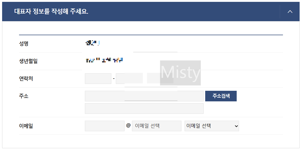 4. 대표자 정보는 실제 대표자의 정보를 입력해 주세요