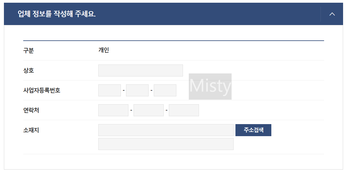 3. 업체정보는 사업자등록증을 기준으로 상호명과 사업자등록번호, 연락처와 소재지를 입력해 주세요