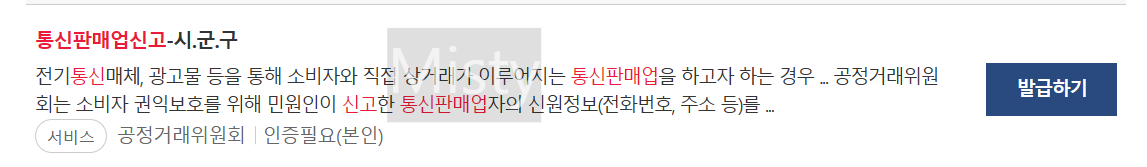 2. 통신판매업신고 발급하기 버튼을 클릭합니다.